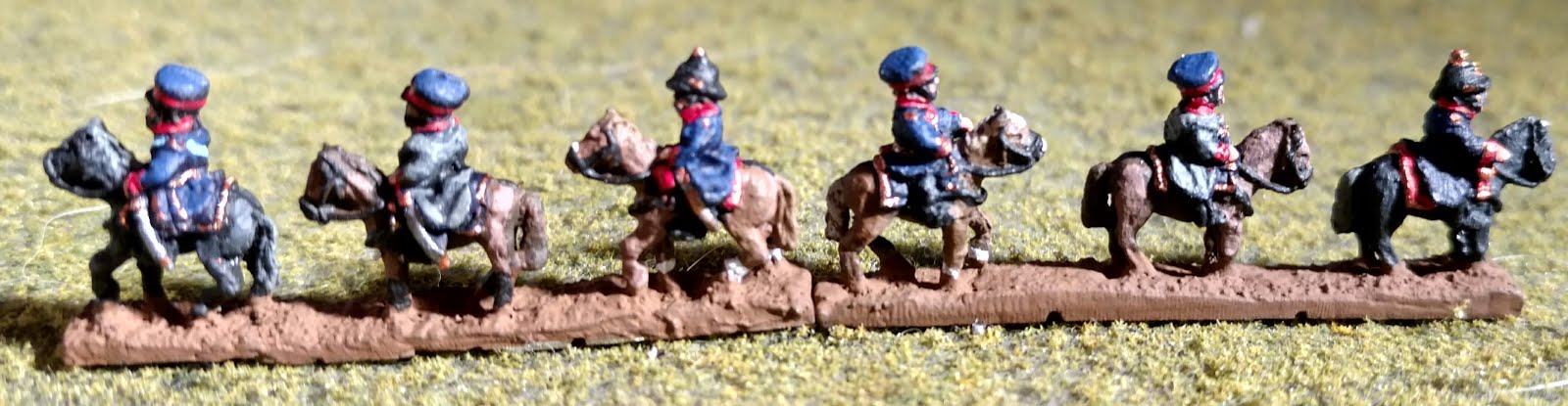 For cavalry I was initially basing them as three bases of three figures each, but they look very sparse at that density, despite that being standard Polemos density. I think I am going to go with four figures per base with two bases representing two squadrons and four bases representing a regiment. This means that all of the cavalry I have had painted up so far has to be doubled in size. I probably should have thought about that before sending off my last order... I dislike basing.