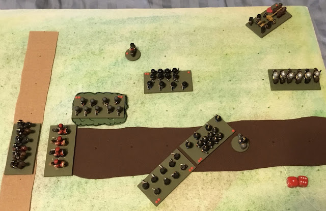 After playing a few times with One-Hour Wargames (OHW) using the Medieval variant I had a hankering to blow off the dust from my 1866 Austrians and Prussians and give the Rifle and Saber variant a go. I have used these troops in the past using Neil Thomas' Wargaming Nineteenth Century Europe (WNCE) rules (on a grid, of course) and really enjoyed them. WNCE is crunchier than OHW (what isn't, after all), but not too crunchy.